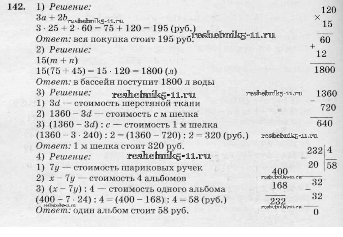 Готовая домашняя работа с ответами по Математике за 5 класс Петерсон, Дорофеев Учебник Часть 1, 2 Ювента 2014 ФГОС - Часть 1. Упражнения 142