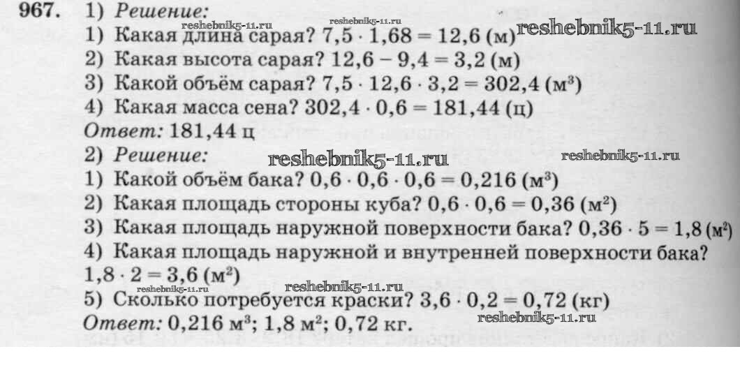 Готовая домашняя работа с ответами по Математике за 5 класс Петерсон, Дорофеев Учебник Часть 1, 2 Ювента 2014 ФГОС - Часть 2. Упражнения 967