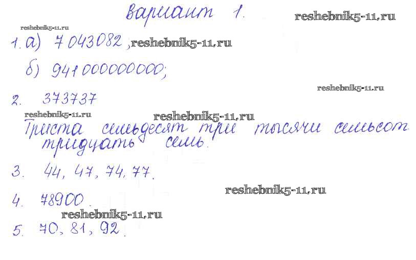 Готовая домашняя работа с ответами по Математике за 5 класс Журавлев, Свентковский Контрольные и самостоятельные работы УМК Экзамен 2015 ФГОС - СР-1. Варианты 1