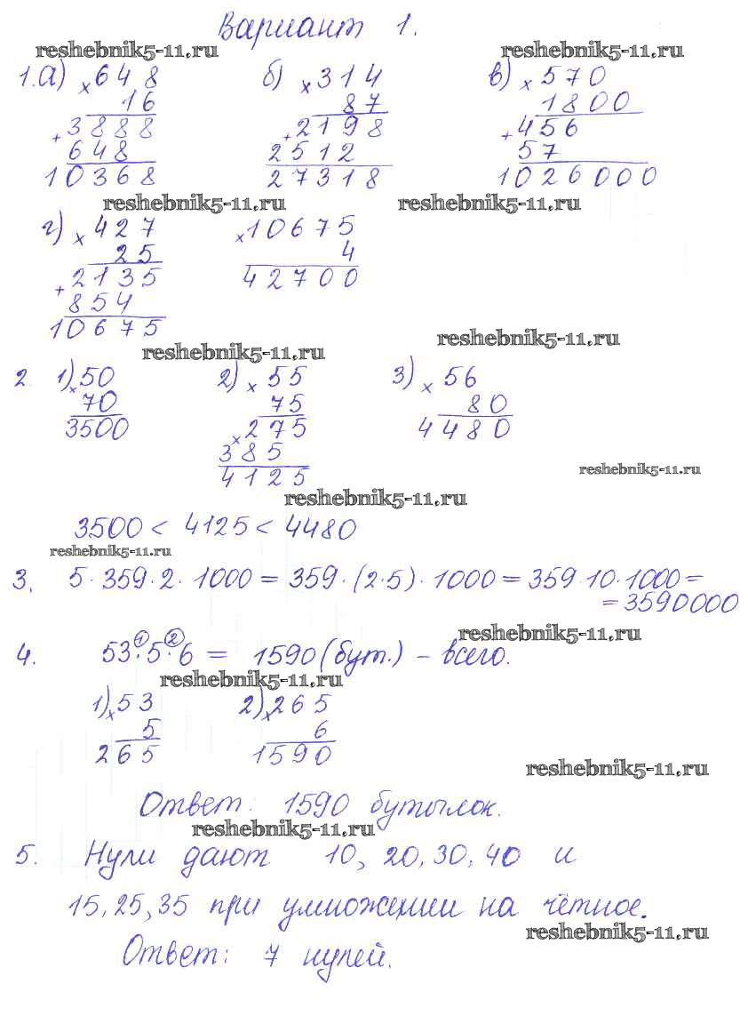 Готовая домашняя работа с ответами по Математике за 5 класс Журавлев, Свентковский Контрольные и самостоятельные работы УМК Экзамен 2015 ФГОС - СР-11. Варианты 1