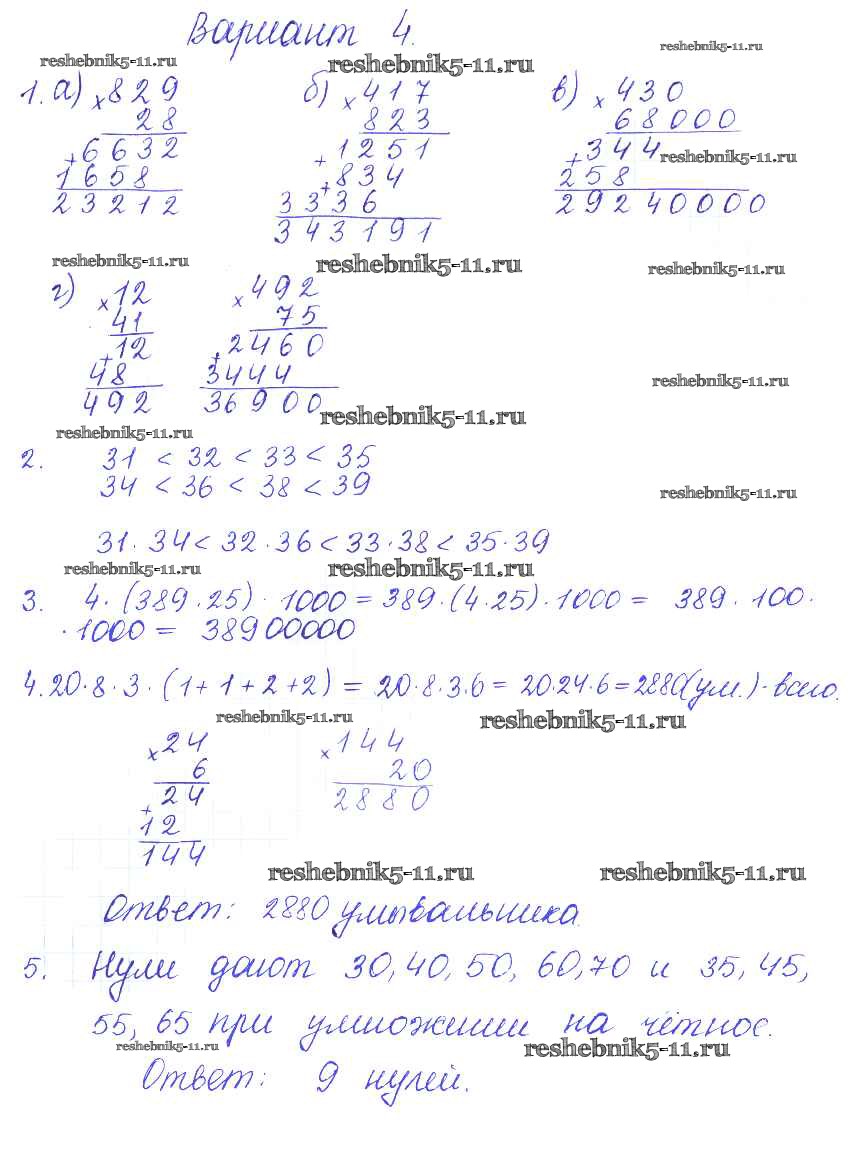 Готовая домашняя работа с ответами по Математике за 5 класс Журавлев, Свентковский Контрольные и самостоятельные работы УМК Экзамен 2015 ФГОС - СР-11. Варианты 4
