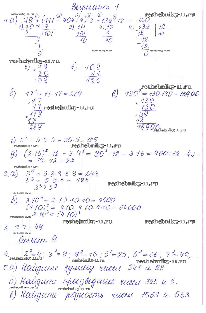 Готовая домашняя работа с ответами по Математике за 5 класс Журавлев, Свентковский Контрольные и самостоятельные работы УМК Экзамен 2015 ФГОС - СР-15. Варианты 1