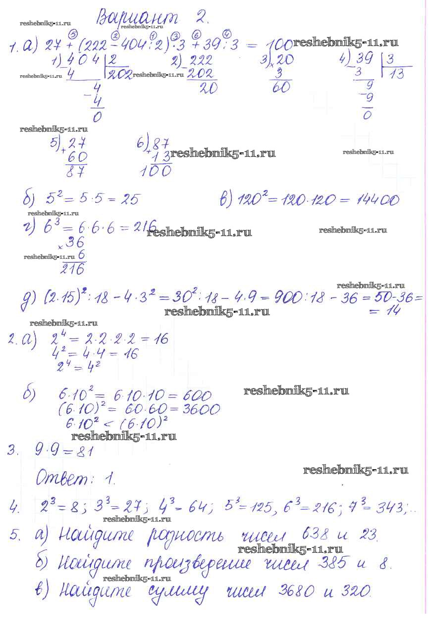Готовая домашняя работа с ответами по Математике за 5 класс Журавлев, Свентковский Контрольные и самостоятельные работы УМК Экзамен 2015 ФГОС - СР-15. Варианты 2