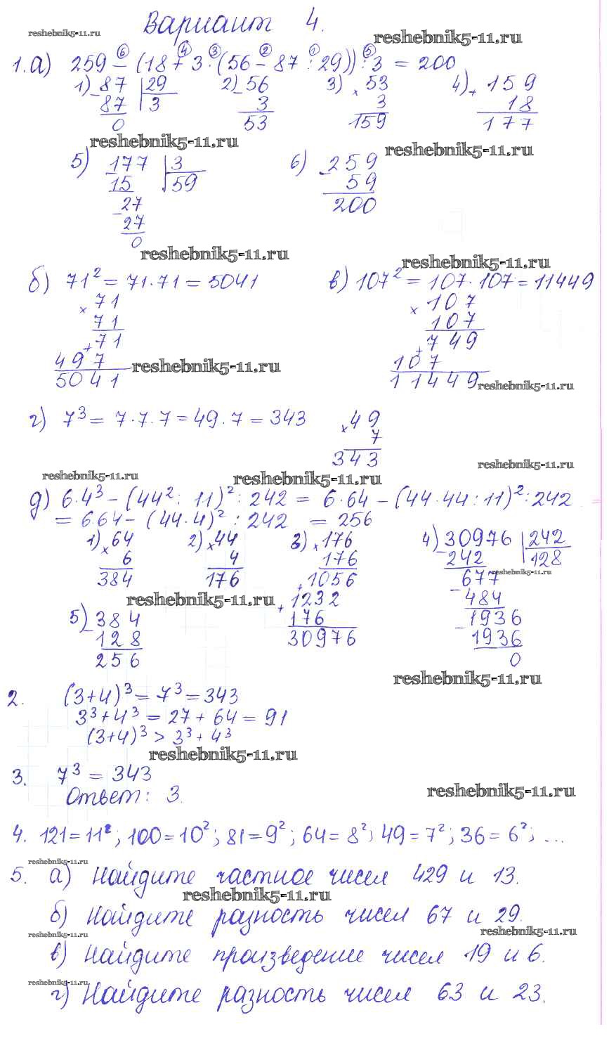Готовая домашняя работа с ответами по Математике за 5 класс Журавлев, Свентковский Контрольные и самостоятельные работы УМК Экзамен 2015 ФГОС - СР-15. Варианты 4