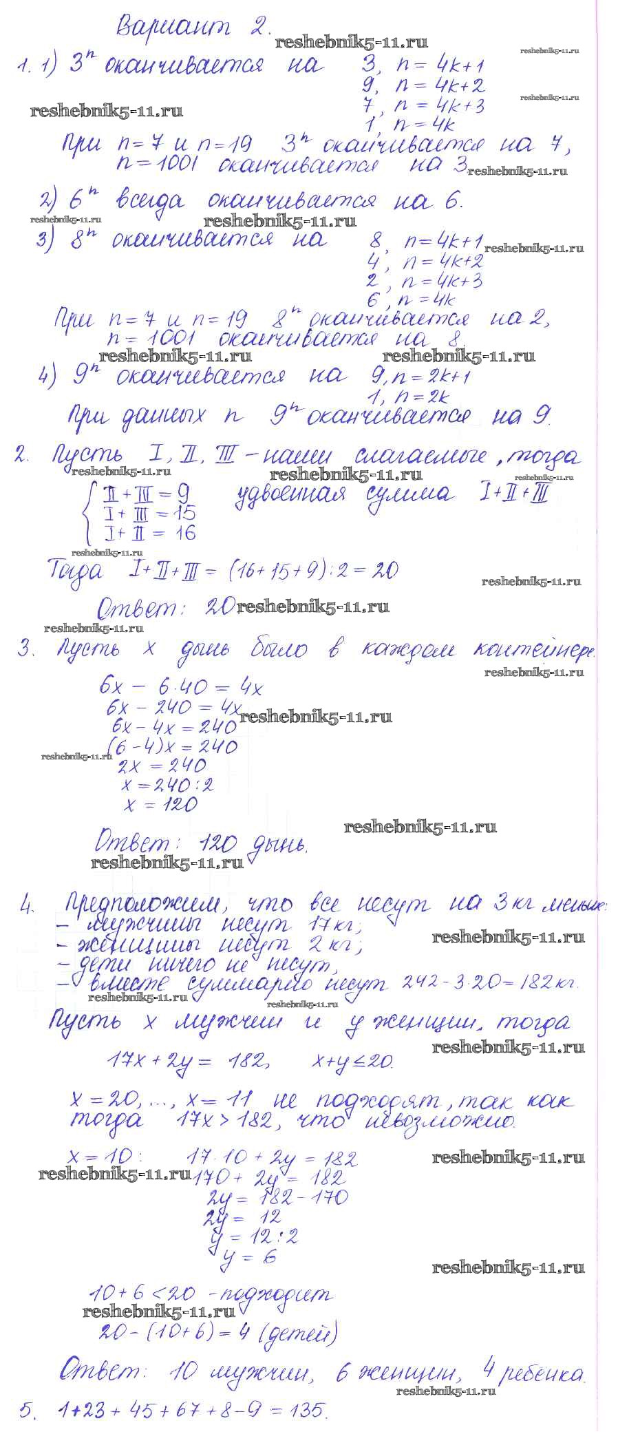 Готовая домашняя работа с ответами по Математике за 5 класс Журавлев, Свентковский Контрольные и самостоятельные работы УМК Экзамен 2015 ФГОС - СР-16. Варианты 2
