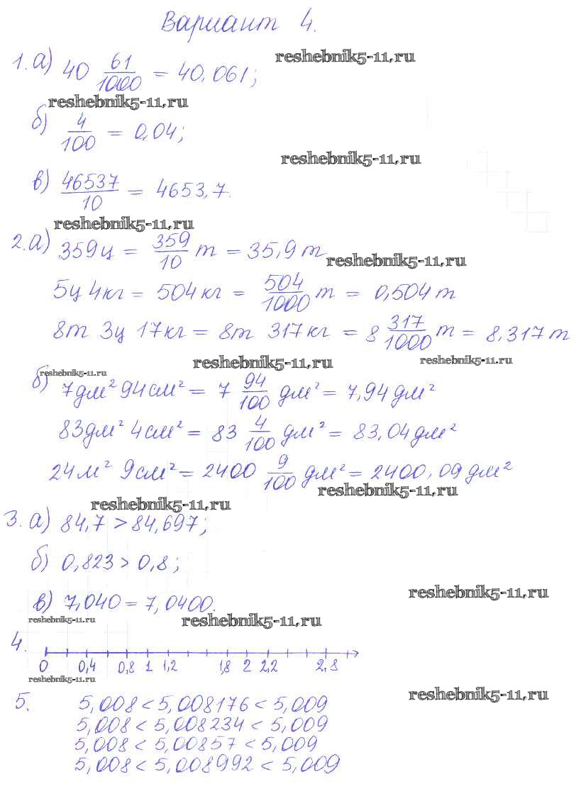 Готовая домашняя работа с ответами по Математике за 5 класс Журавлев, Свентковский Контрольные и самостоятельные работы УМК Экзамен 2015 ФГОС - СР-27. Варианты 4