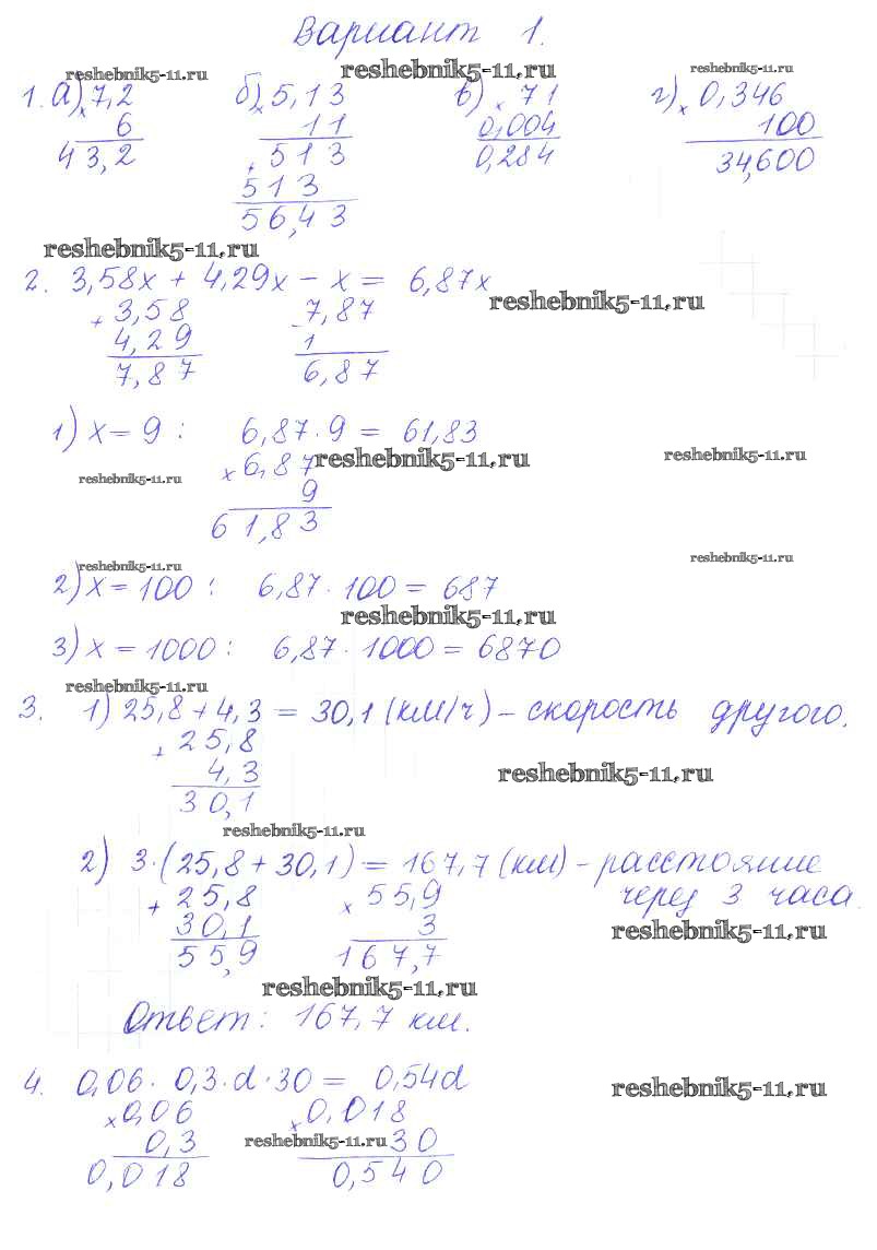 Готовая домашняя работа с ответами по Математике за 5 класс Журавлев, Свентковский Контрольные и самостоятельные работы УМК Экзамен 2015 ФГОС - СР-29. Варианты 1