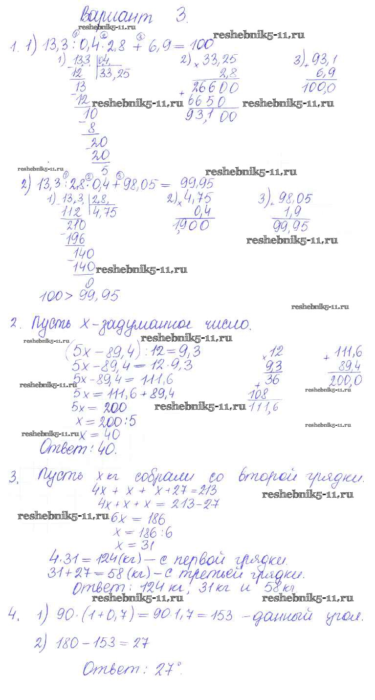 Готовая домашняя работа с ответами по Математике за 5 класс Журавлев, Свентковский Контрольные и самостоятельные работы УМК Экзамен 2015 ФГОС - СР-38. Варианты 3