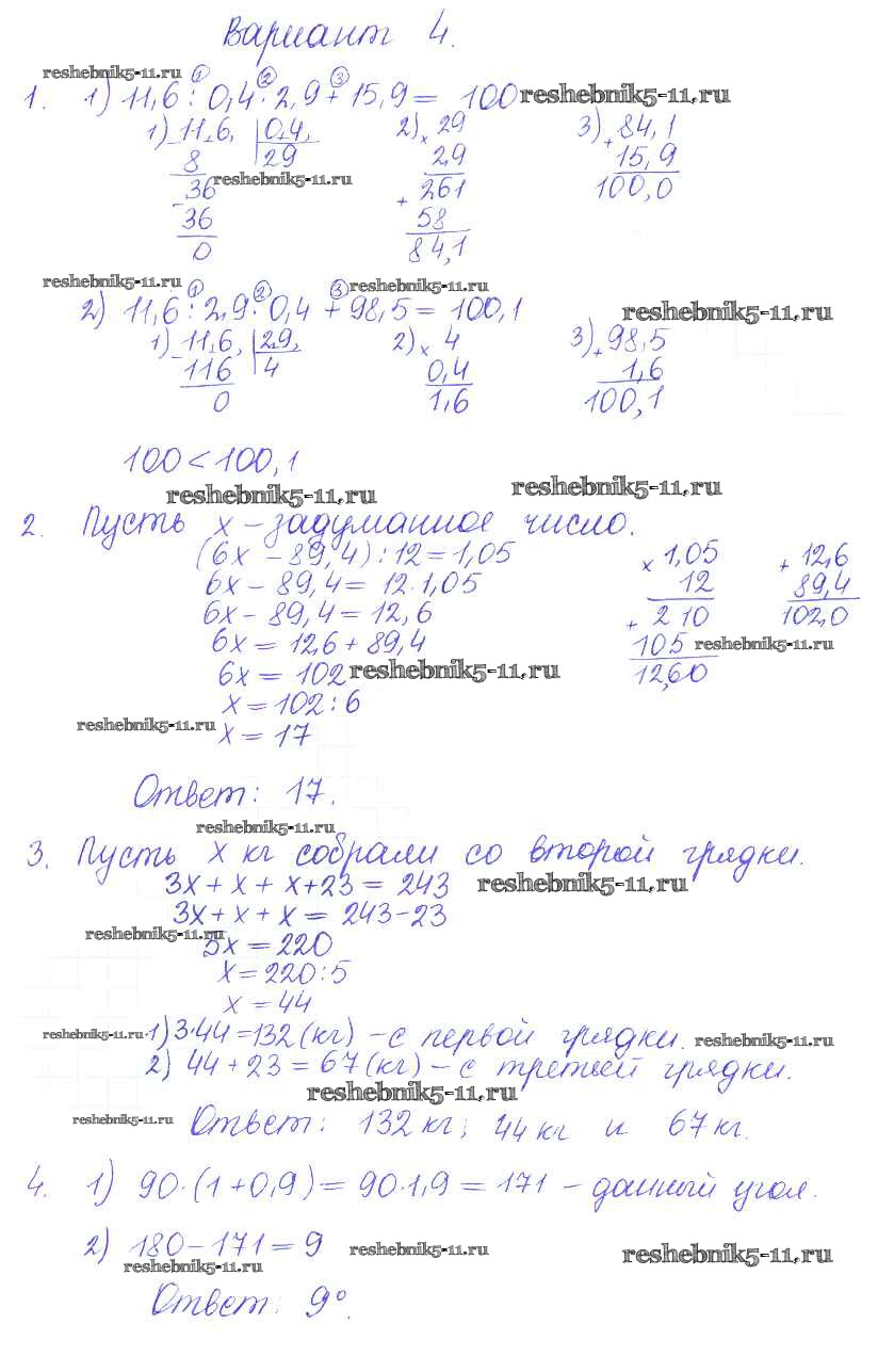 Готовая домашняя работа с ответами по Математике за 5 класс Журавлев, Свентковский Контрольные и самостоятельные работы УМК Экзамен 2015 ФГОС - СР-38. Варианты 4