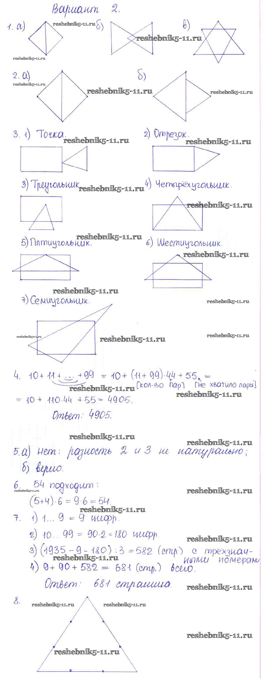 Готовая домашняя работа с ответами по Математике за 5 класс Журавлев, Свентковский Контрольные и самостоятельные работы УМК Экзамен 2015 ФГОС - СР-4. Варианты 2