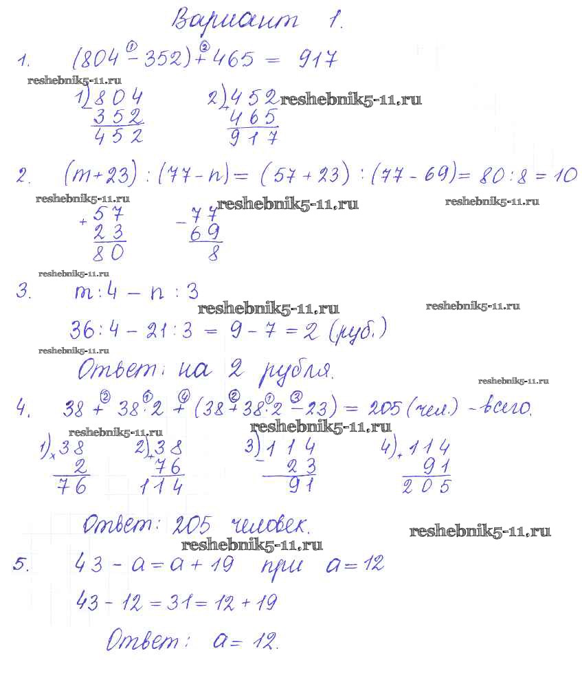 Готовая домашняя работа с ответами по Математике за 5 класс Журавлев, Свентковский Контрольные и самостоятельные работы УМК Экзамен 2015 ФГОС - СР-8. Варианты 1
