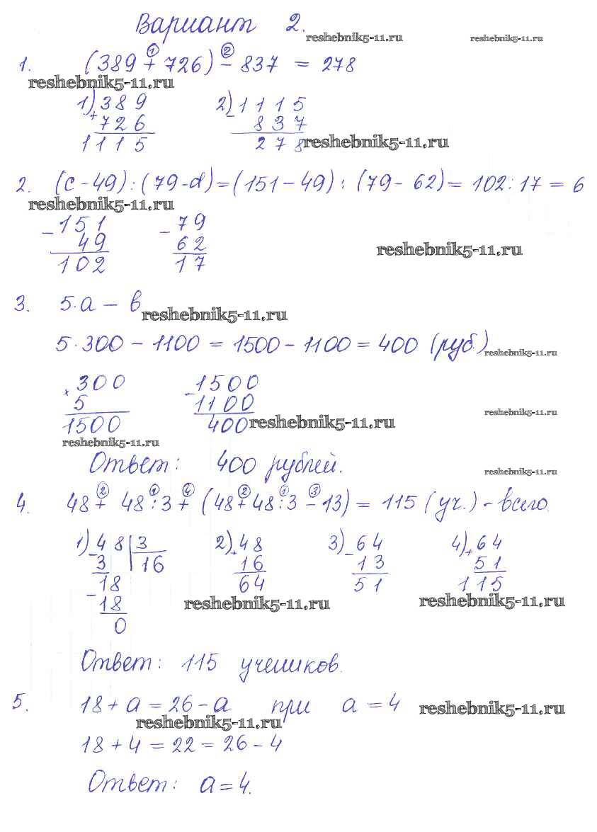 Готовая домашняя работа с ответами по Математике за 5 класс Журавлев, Свентковский Контрольные и самостоятельные работы УМК Экзамен 2015 ФГОС - СР-8. Варианты 2