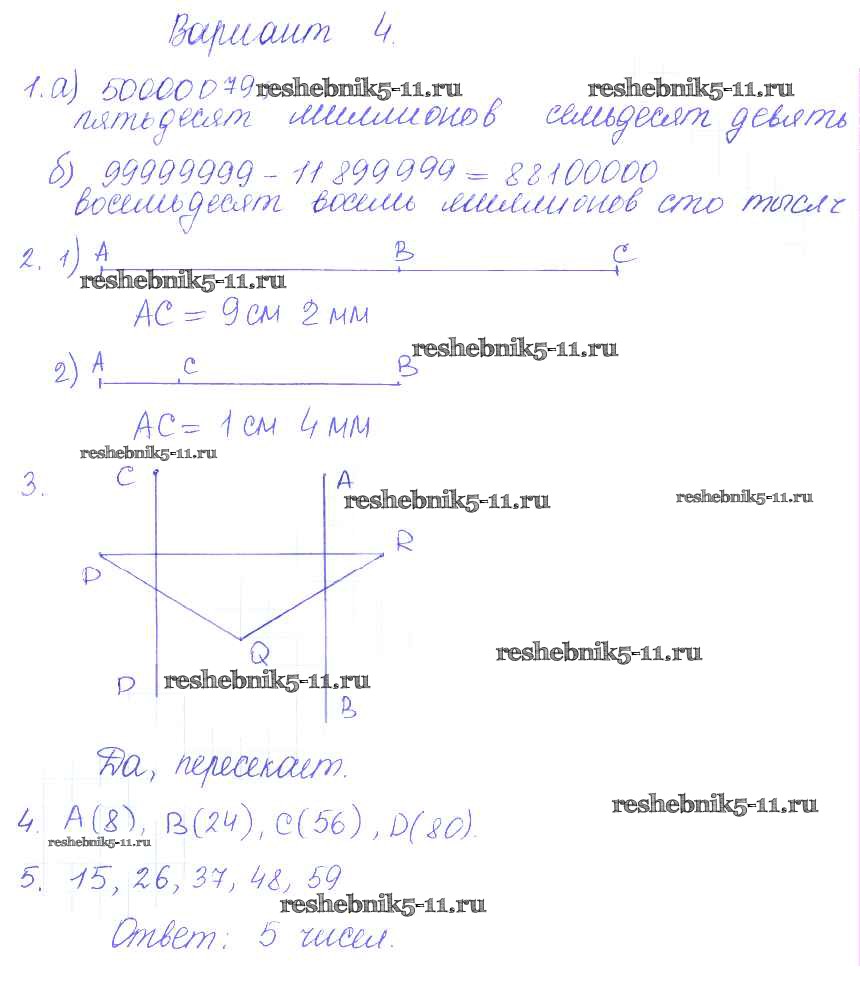 Готовая домашняя работа с ответами по Математике за 5 класс Журавлев, Свентковский Контрольные и самостоятельные работы УМК Экзамен 2015 ФГОС - КР-1. Варианты 4