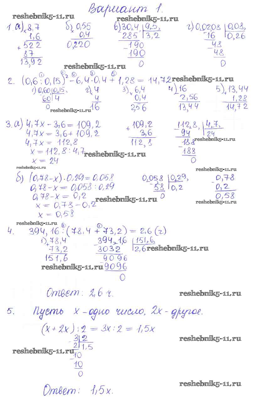 Готовая домашняя работа с ответами по Математике за 5 класс Журавлев, Свентковский Контрольные и самостоятельные работы УМК Экзамен 2015 ФГОС - КР-12. Варианты 1