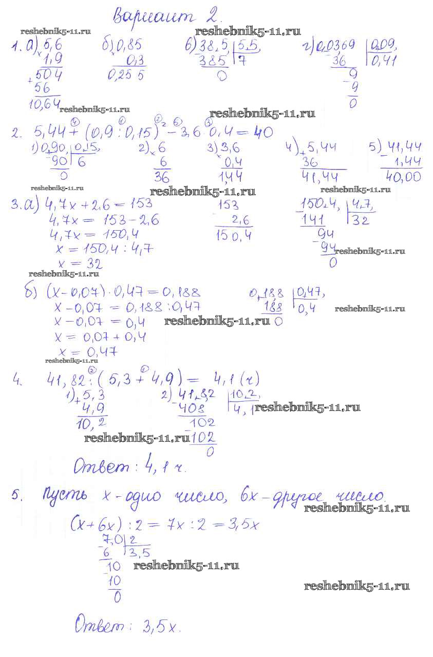 Готовая домашняя работа с ответами по Математике за 5 класс Журавлев, Свентковский Контрольные и самостоятельные работы УМК Экзамен 2015 ФГОС - КР-12. Варианты 2