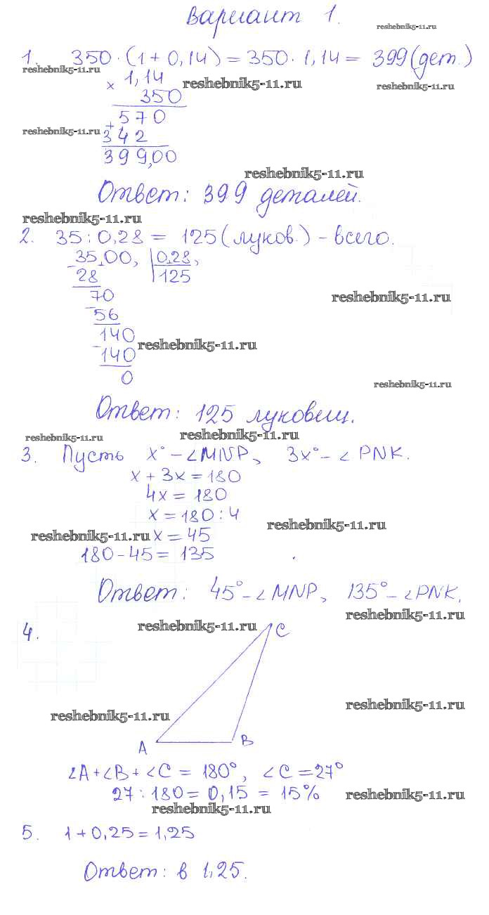 Готовая домашняя работа с ответами по Математике за 5 класс Журавлев, Свентковский Контрольные и самостоятельные работы УМК Экзамен 2015 ФГОС - КР-13. Варианты 1