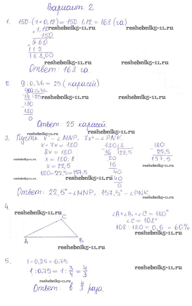 Готовая домашняя работа с ответами по Математике за 5 класс Журавлев, Свентковский Контрольные и самостоятельные работы УМК Экзамен 2015 ФГОС - КР-13. Варианты 2