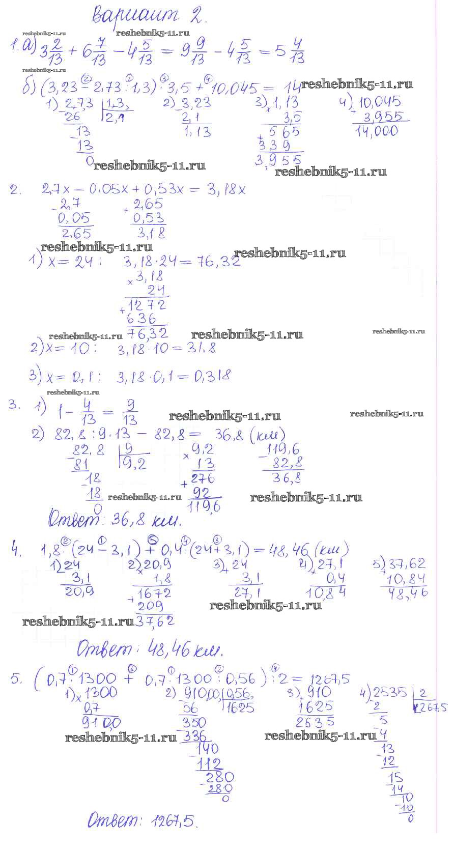 Готовая домашняя работа с ответами по Математике за 5 класс Журавлев, Свентковский Контрольные и самостоятельные работы УМК Экзамен 2015 ФГОС - КР-14. Варианты 2