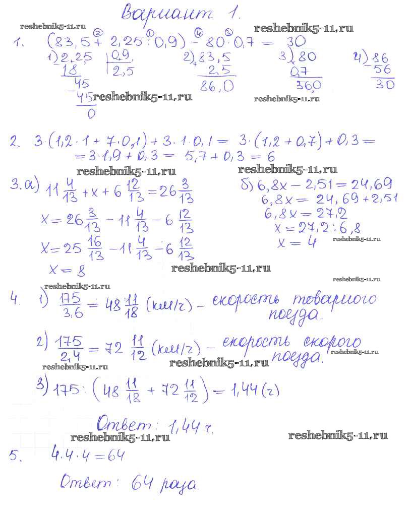 Готовая домашняя работа с ответами по Математике за 5 класс Журавлев, Свентковский Контрольные и самостоятельные работы УМК Экзамен 2015 ФГОС - КР-15. Варианты 1