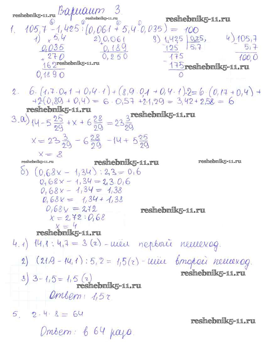 Готовая домашняя работа с ответами по Математике за 5 класс Журавлев, Свентковский Контрольные и самостоятельные работы УМК Экзамен 2015 ФГОС - КР-15. Варианты 3