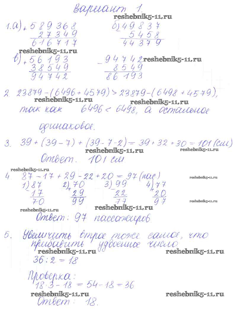 Готовая домашняя работа с ответами по Математике за 5 класс Журавлев, Свентковский Контрольные и самостоятельные работы УМК Экзамен 2015 ФГОС - КР-2. Варианты 1