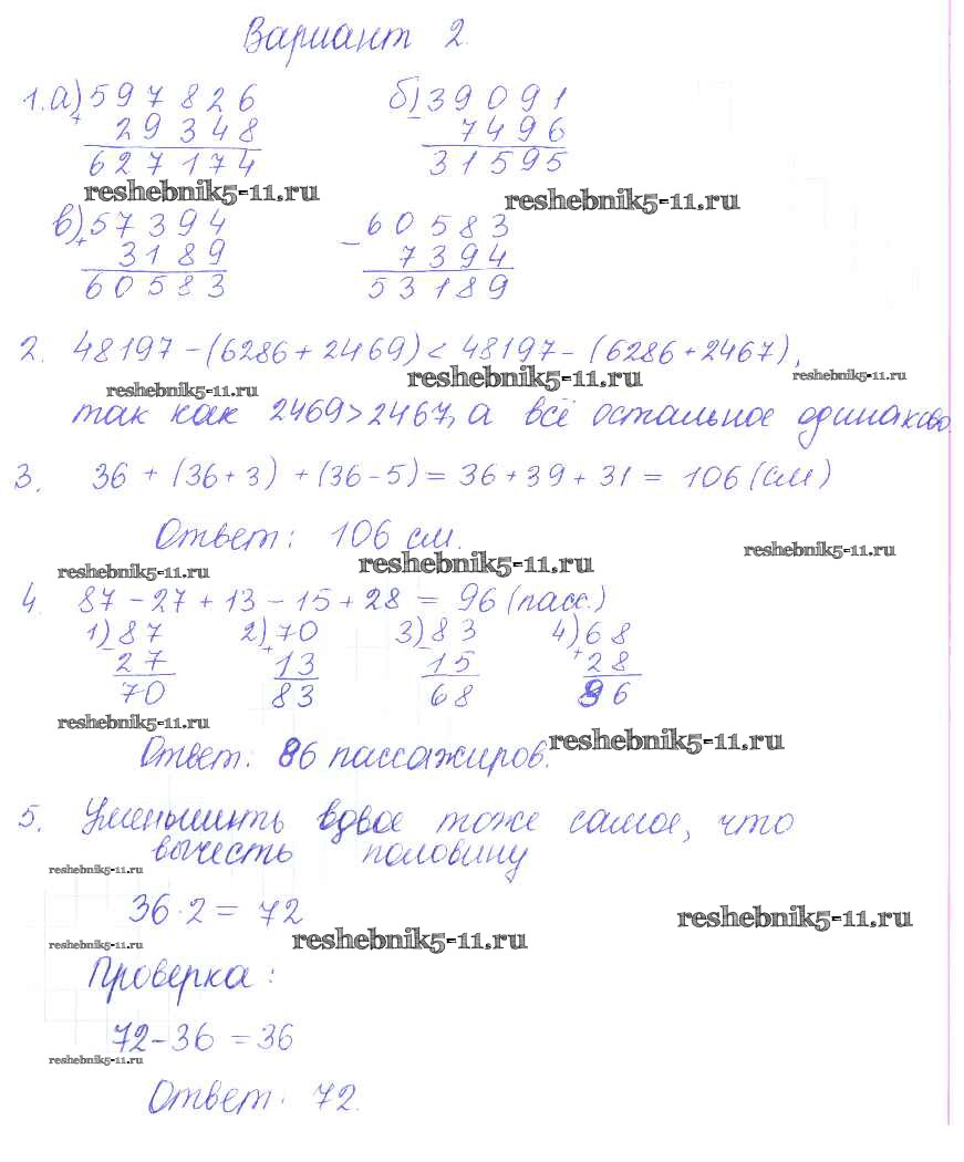 Готовая домашняя работа с ответами по Математике за 5 класс Журавлев, Свентковский Контрольные и самостоятельные работы УМК Экзамен 2015 ФГОС - КР-2. Варианты 2