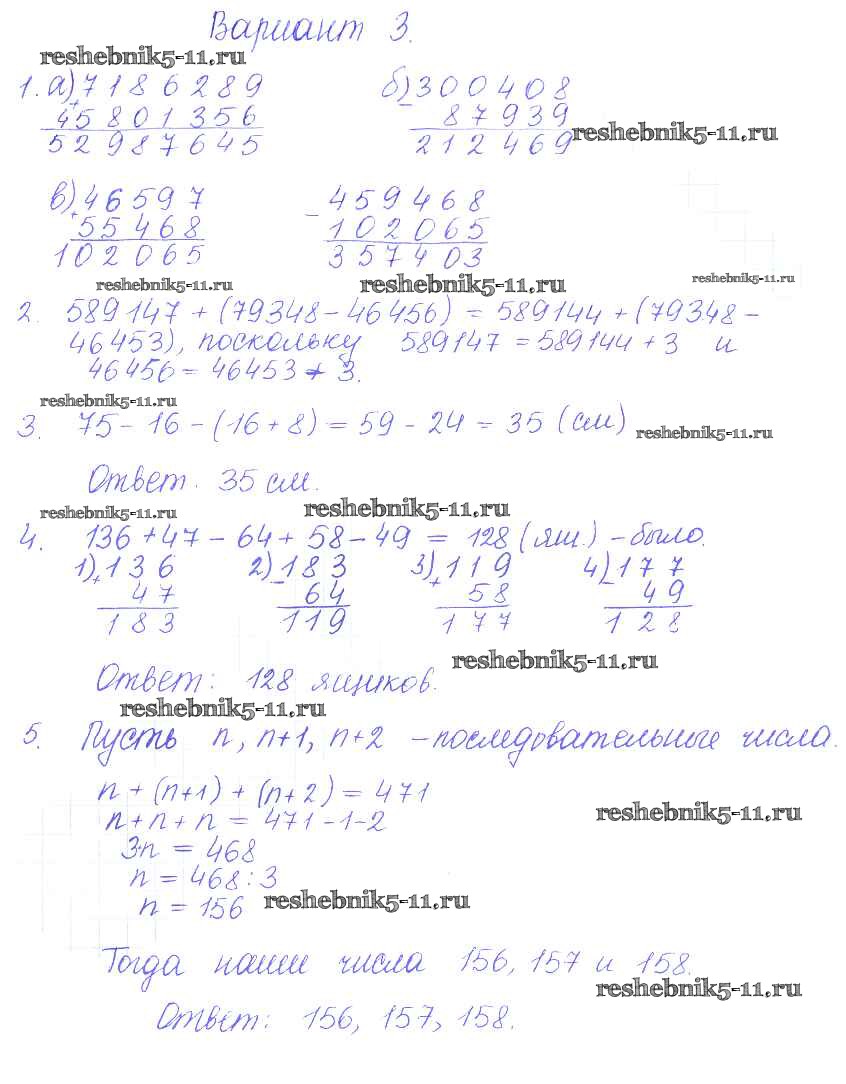Готовая домашняя работа с ответами по Математике за 5 класс Журавлев, Свентковский Контрольные и самостоятельные работы УМК Экзамен 2015 ФГОС - КР-2. Варианты 3