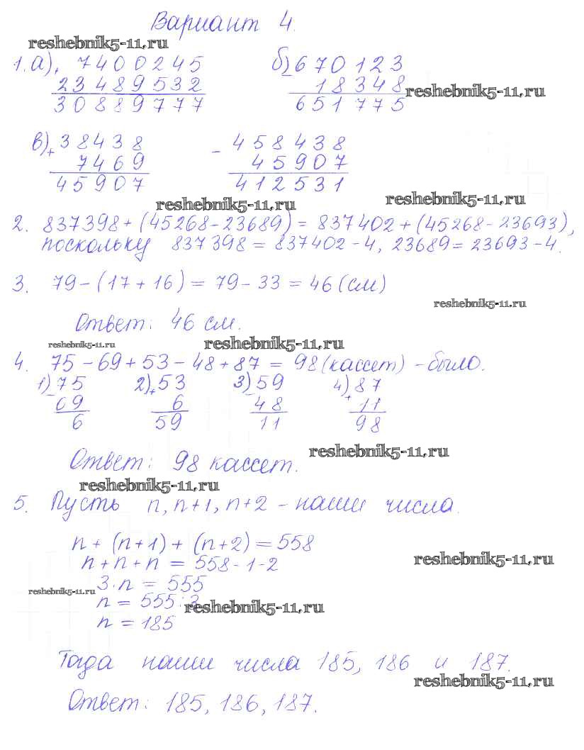 Готовая домашняя работа с ответами по Математике за 5 класс Журавлев, Свентковский Контрольные и самостоятельные работы УМК Экзамен 2015 ФГОС - КР-2. Варианты 4