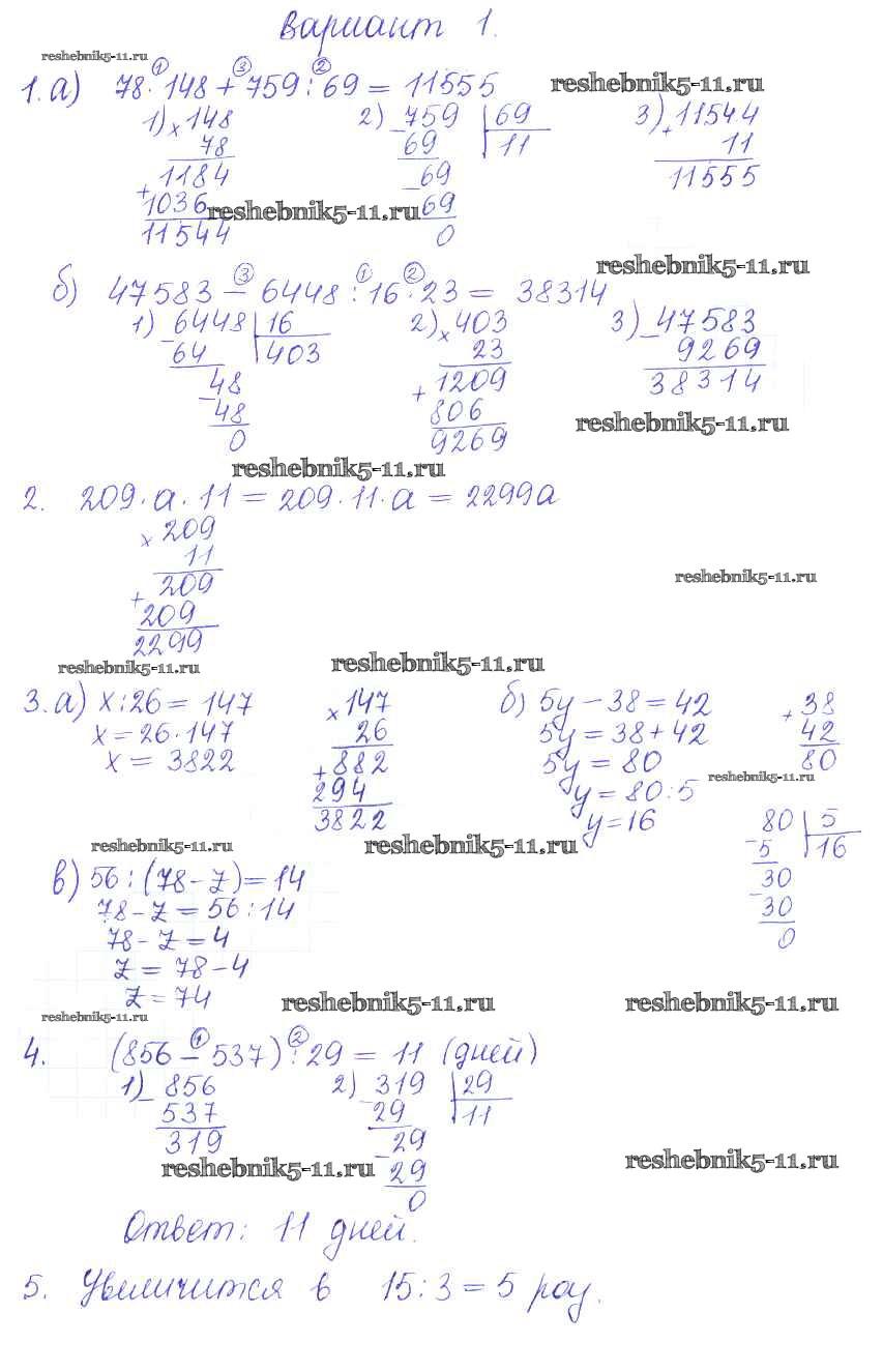 Готовая домашняя работа с ответами по Математике за 5 класс Журавлев, Свентковский Контрольные и самостоятельные работы УМК Экзамен 2015 ФГОС - КР-4. Варианты 1