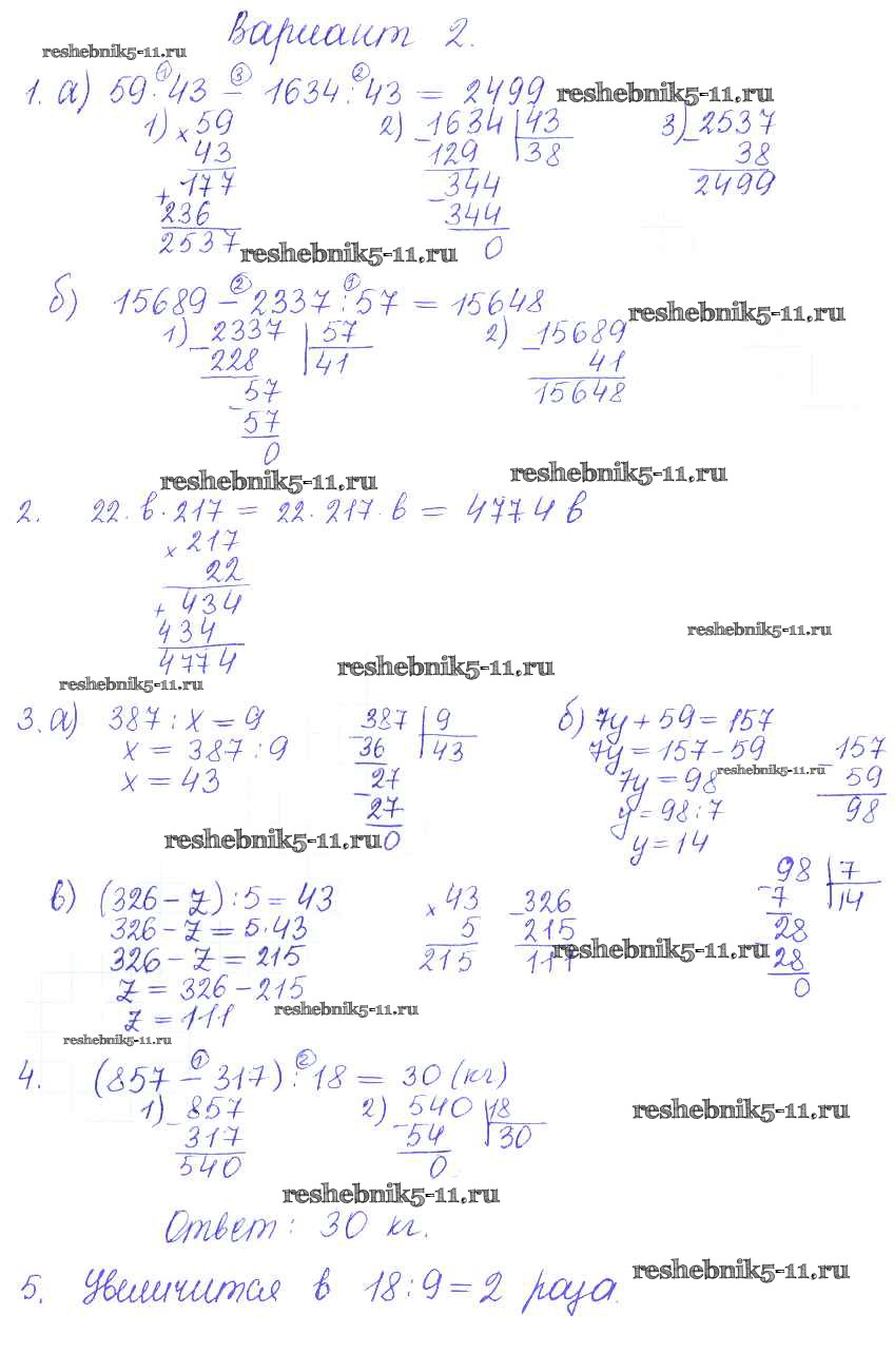 Готовая домашняя работа с ответами по Математике за 5 класс Журавлев, Свентковский Контрольные и самостоятельные работы УМК Экзамен 2015 ФГОС - КР-4. Варианты 2
