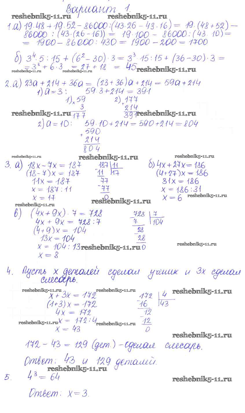 Готовая домашняя работа с ответами по Математике за 5 класс Журавлев, Свентковский Контрольные и самостоятельные работы УМК Экзамен 2015 ФГОС - КР-5. Варианты 1