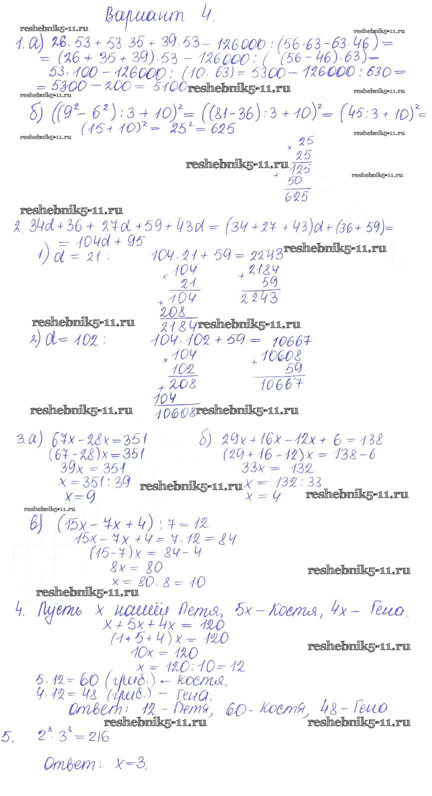 Готовая домашняя работа с ответами по Математике за 5 класс Журавлев, Свентковский Контрольные и самостоятельные работы УМК Экзамен 2015 ФГОС - КР-5. Варианты 4