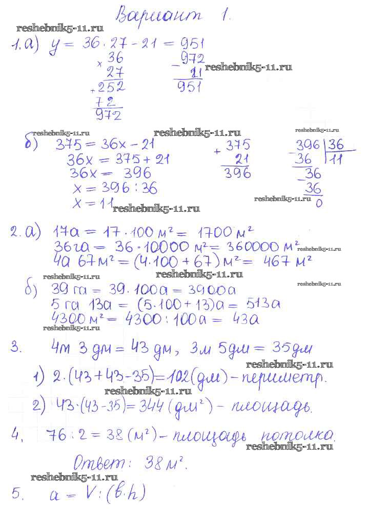 Готовая домашняя работа с ответами по Математике за 5 класс Журавлев, Свентковский Контрольные и самостоятельные работы УМК Экзамен 2015 ФГОС - КР-6. Варианты 1