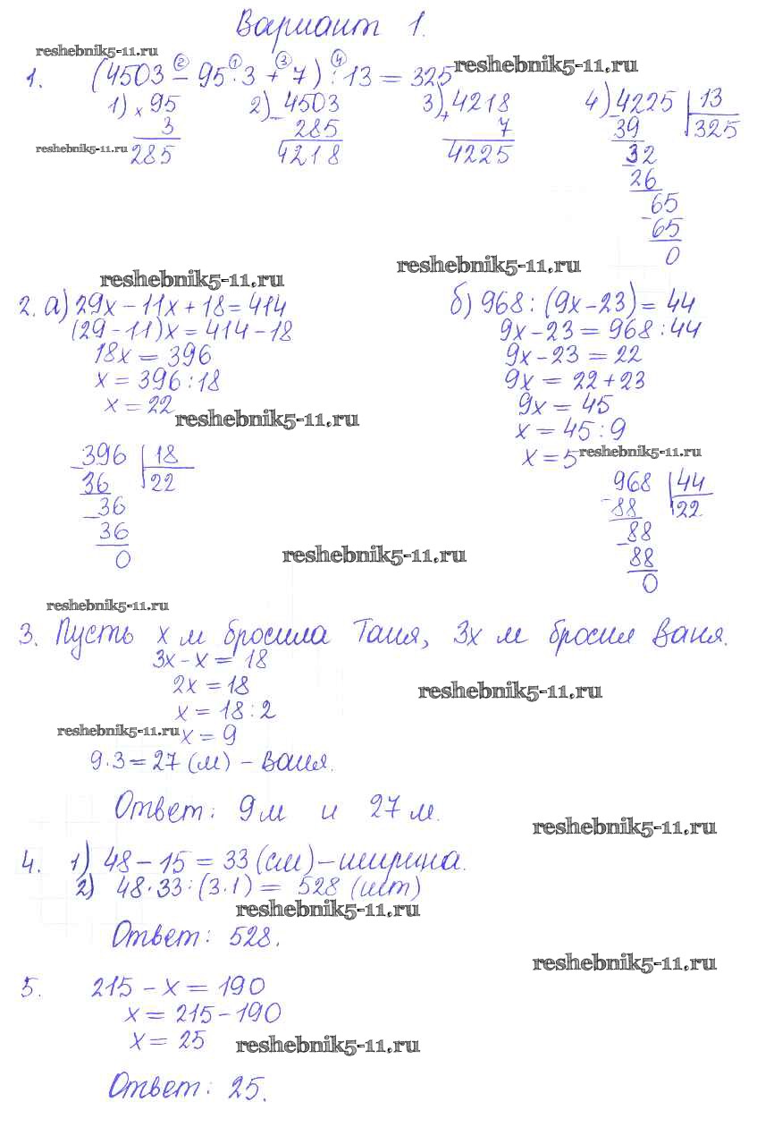Готовая домашняя работа с ответами по Математике за 5 класс Журавлев, Свентковский Контрольные и самостоятельные работы УМК Экзамен 2015 ФГОС - КР-7. Варианты 1