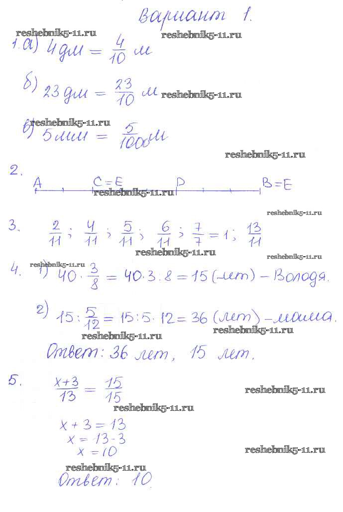 Готовая домашняя работа с ответами по Математике за 5 класс Журавлев, Свентковский Контрольные и самостоятельные работы УМК Экзамен 2015 ФГОС - КР-8. Варианты 1
