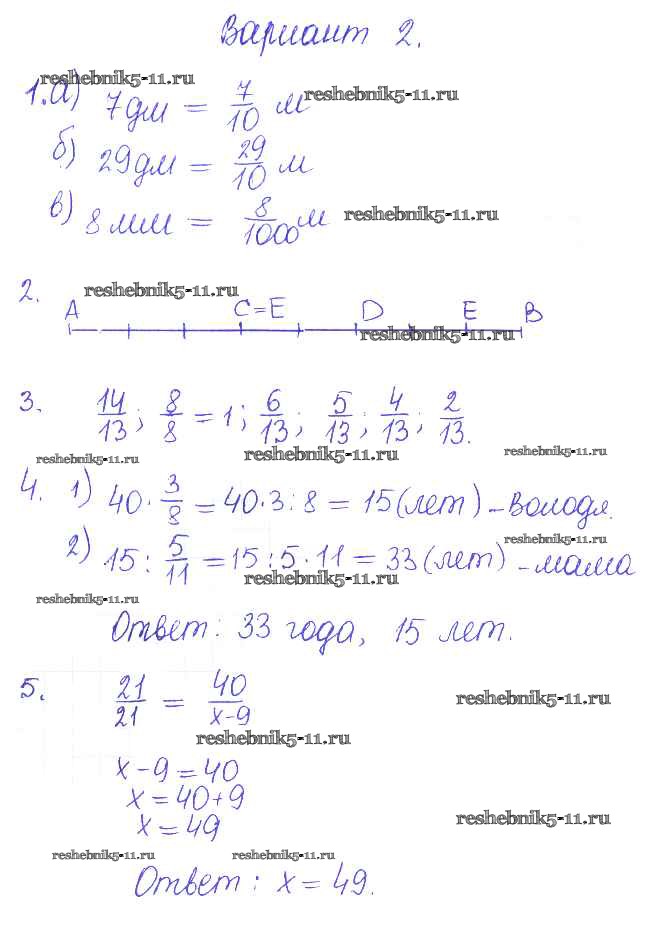 Готовая домашняя работа с ответами по Математике за 5 класс Журавлев, Свентковский Контрольные и самостоятельные работы УМК Экзамен 2015 ФГОС - КР-8. Варианты 2
