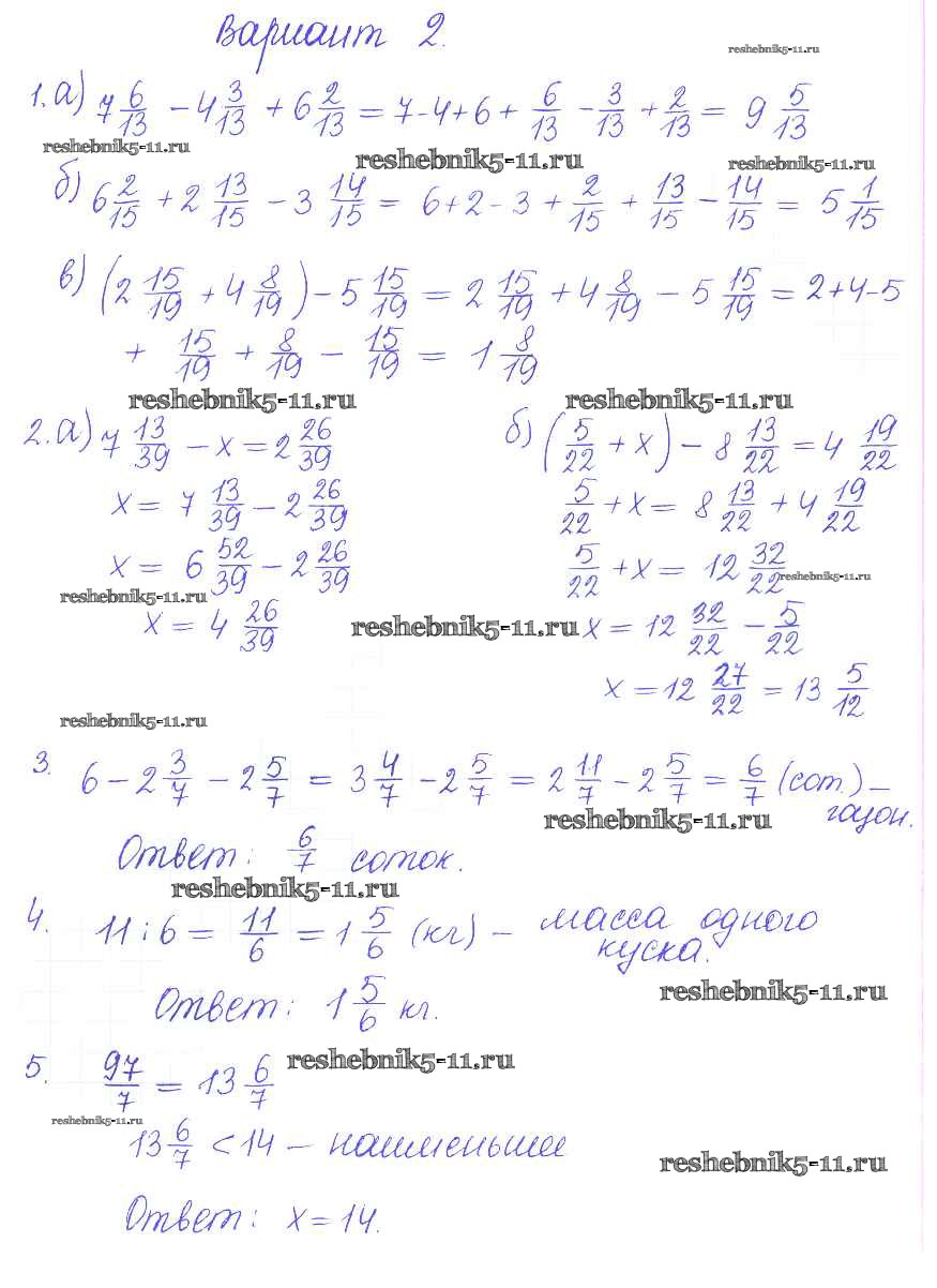 Готовая домашняя работа с ответами по Математике за 5 класс Журавлев, Свентковский Контрольные и самостоятельные работы УМК Экзамен 2015 ФГОС - КР-9. Варианты 2
