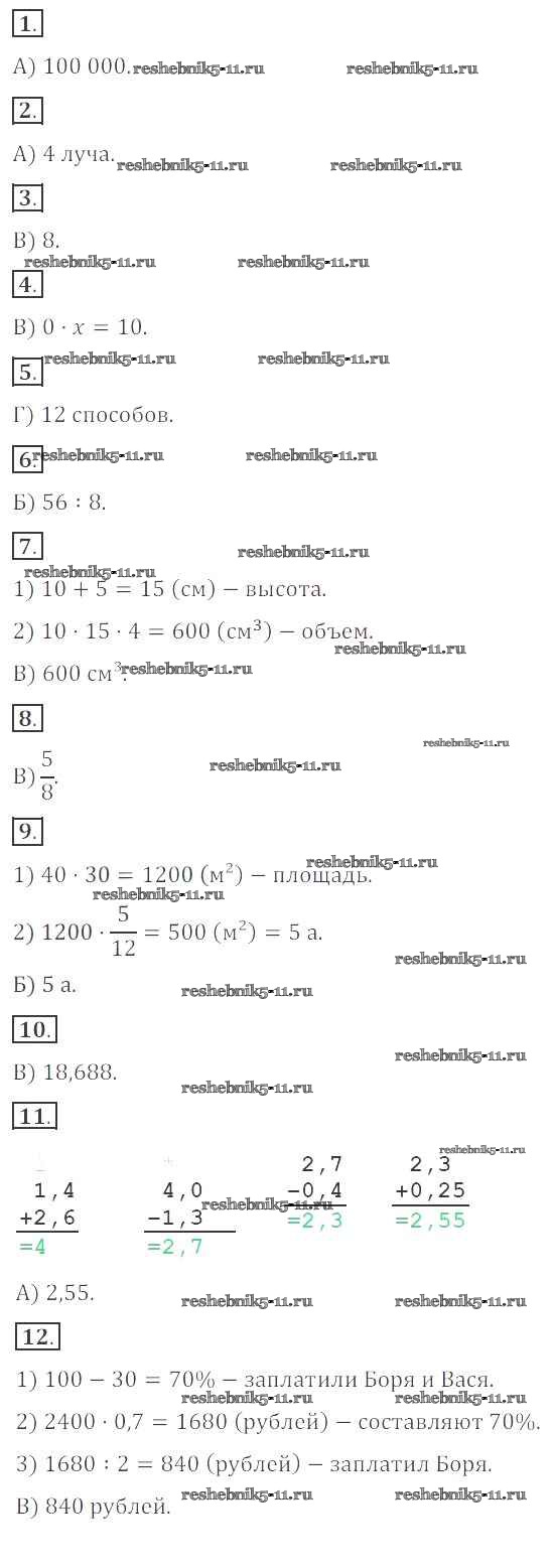 Готовая домашняя работа с ответами по Математике за 5 класс Мерзляк, Полонский, Якир Учебник Алгоритм успеха Вентана-граф 2016 ФГОС - Итоговые задания в тестовой форме. Варианты вариант 1