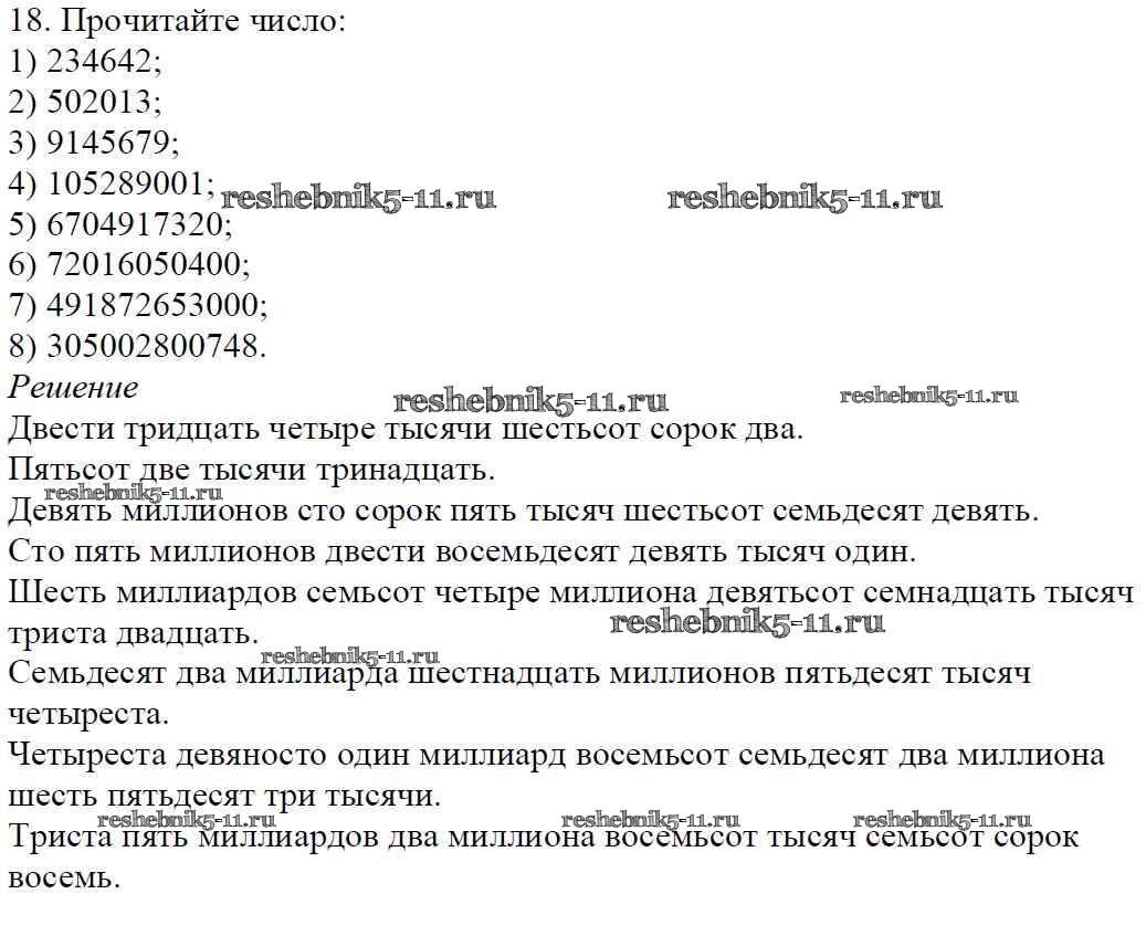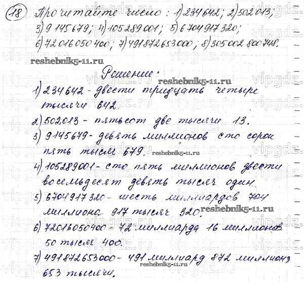 Готовая домашняя работа с ответами по Математике за 5 класс Мерзляк, Полонский, Якир Учебник Алгоритм успеха Вентана-граф 2016 ФГОС - §2. Цифры. Десятичная запись натуральных чисел 18