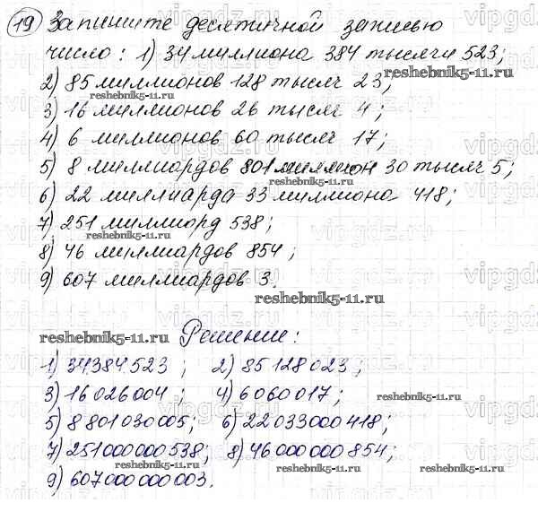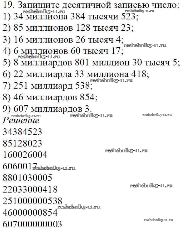 Готовая домашняя работа с ответами по Математике за 5 класс Мерзляк, Полонский, Якир Учебник Алгоритм успеха Вентана-граф 2016 ФГОС - §2. Цифры. Десятичная запись натуральных чисел 19