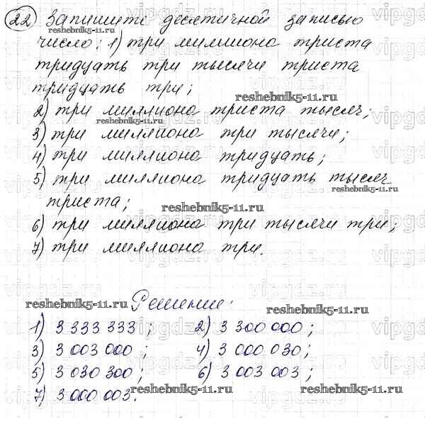 Готовая домашняя работа с ответами по Математике за 5 класс Мерзляк, Полонский, Якир Учебник Алгоритм успеха Вентана-граф 2016 ФГОС - §2. Цифры. Десятичная запись натуральных чисел 22