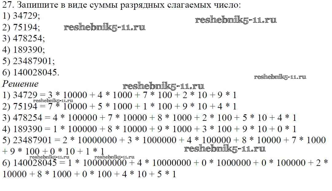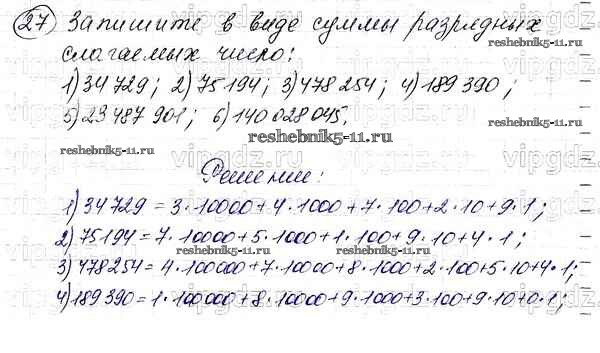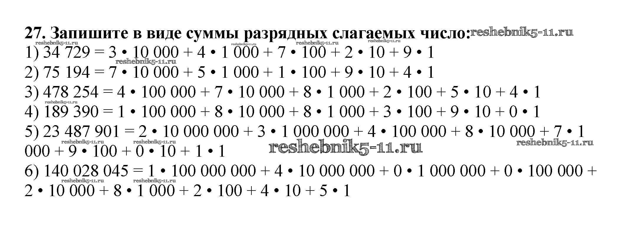 Готовая домашняя работа с ответами по Математике за 5 класс Мерзляк, Полонский, Якир Учебник Алгоритм успеха Вентана-граф 2016 ФГОС - §2. Цифры. Десятичная запись натуральных чисел 27
