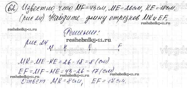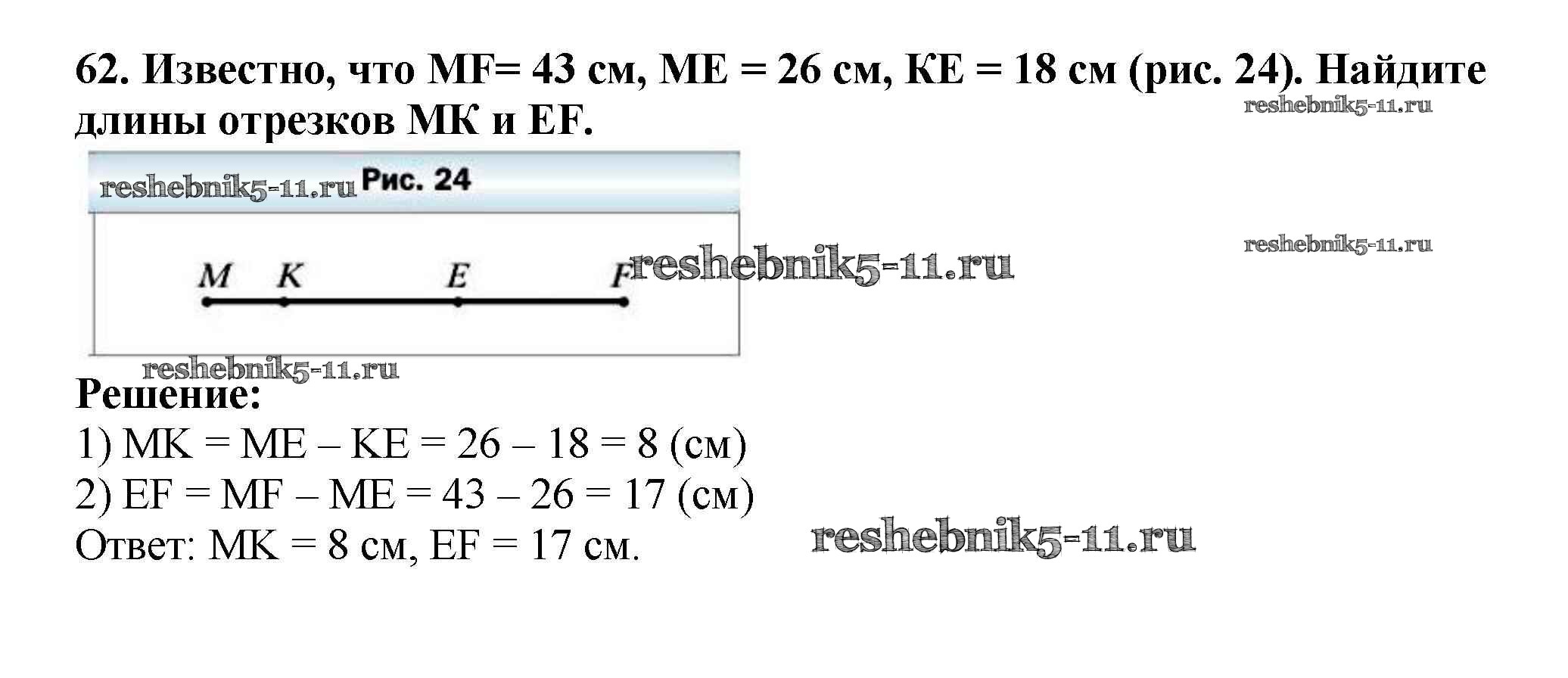 Готовая домашняя работа с ответами по Математике за 5 класс Мерзляк, Полонский, Якир Учебник Алгоритм успеха Вентана-граф 2016 ФГОС - §3. Отрезок. Длина отрезка 62