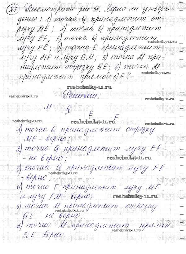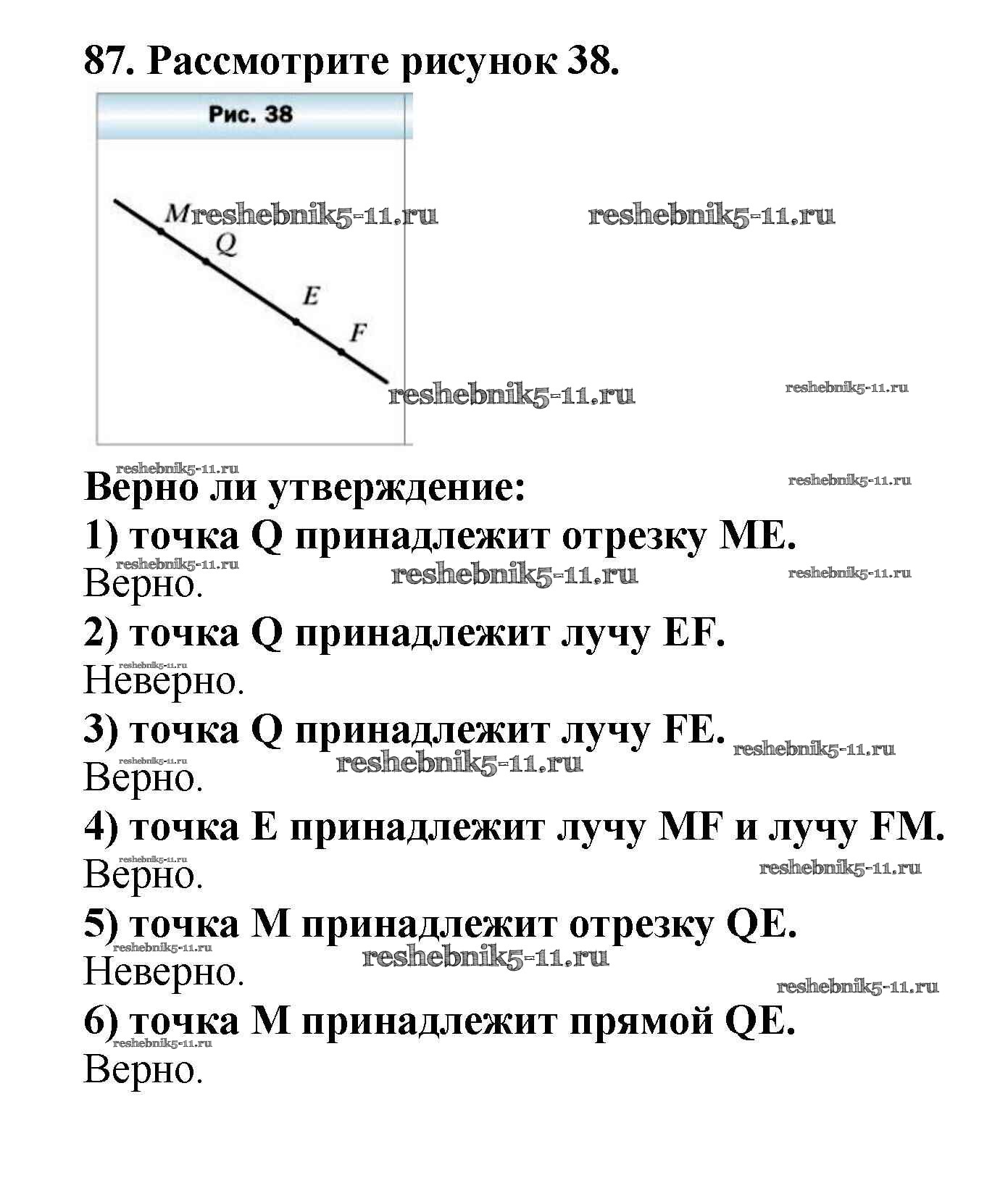 Готовая домашняя работа с ответами по Математике за 5 класс Мерзляк, Полонский, Якир Учебник Алгоритм успеха Вентана-граф 2016 ФГОС - §4. Плоскость. Прямая. Луч 87