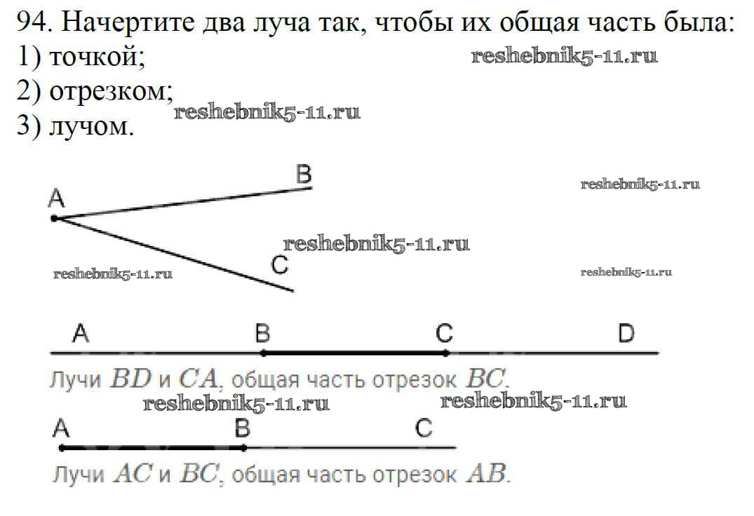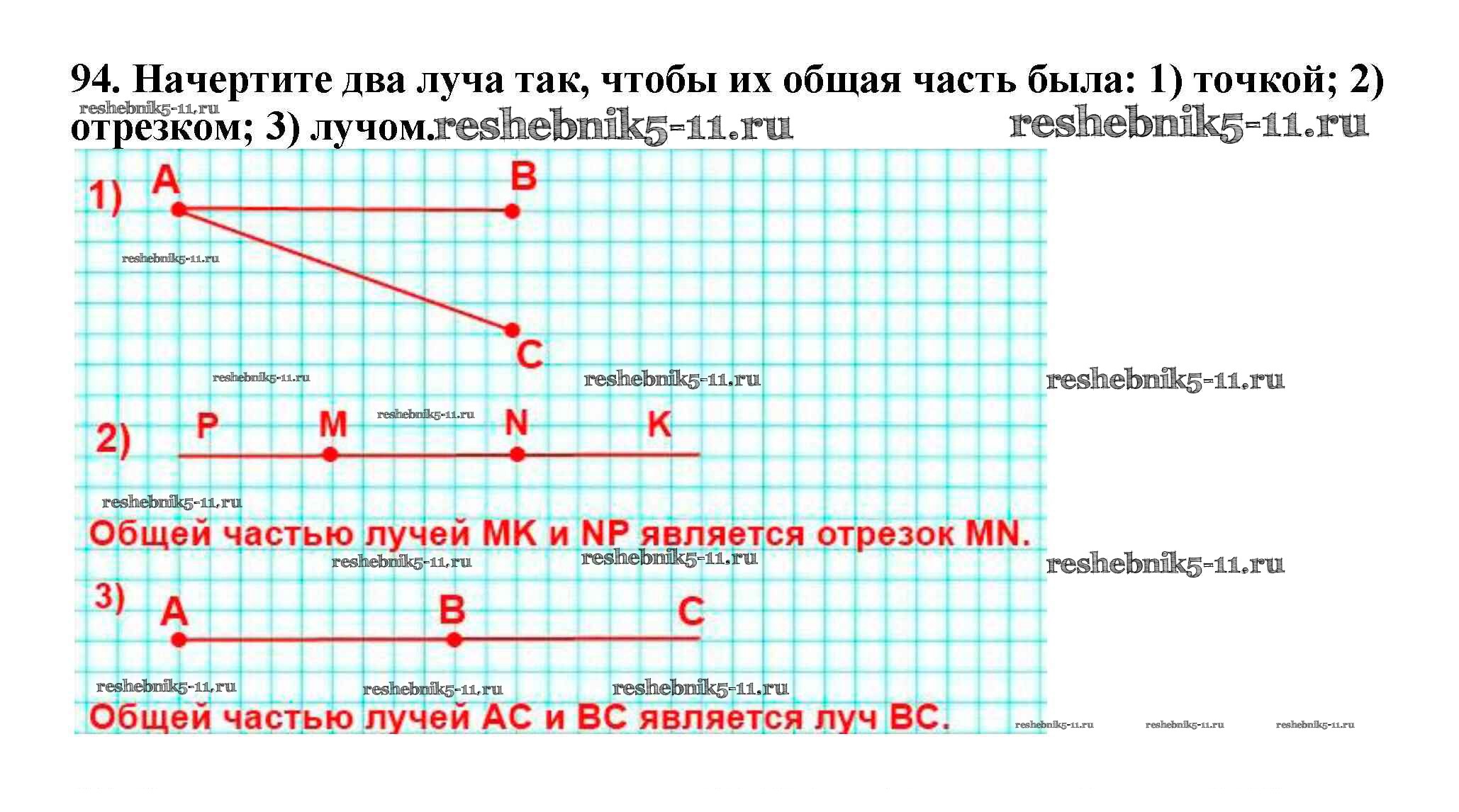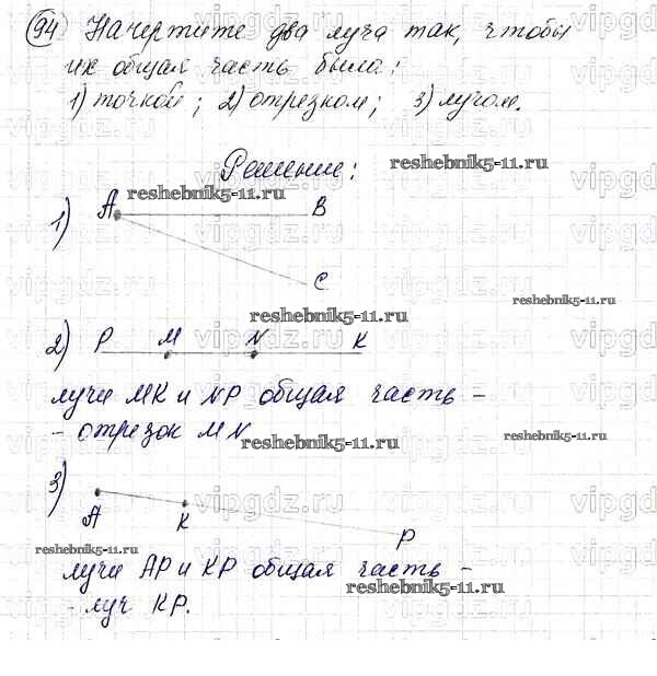 Готовая домашняя работа с ответами по Математике за 5 класс Мерзляк, Полонский, Якир Учебник Алгоритм успеха Вентана-граф 2016 ФГОС - §4. Плоскость. Прямая. Луч 94
