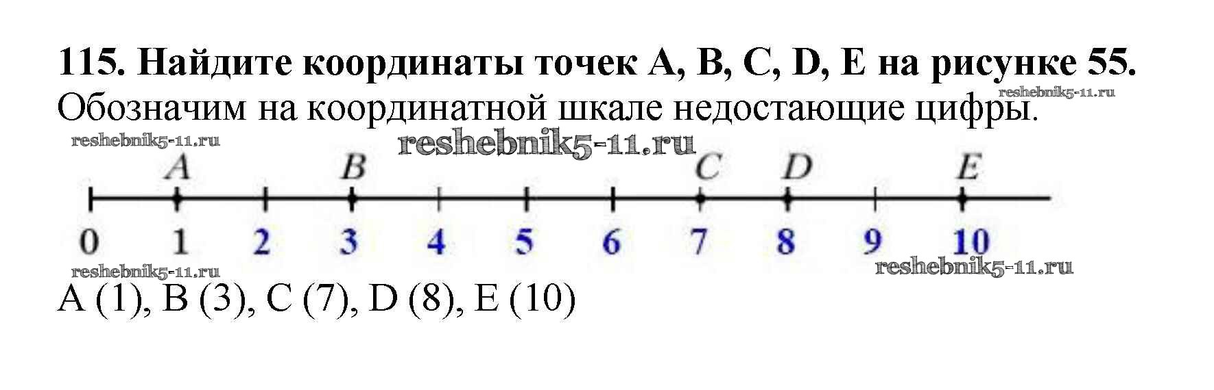 Готовая домашняя работа с ответами по Математике за 5 класс Мерзляк, Полонский, Якир Учебник Алгоритм успеха Вентана-граф 2016 ФГОС - §5. Шкала. Координатный луч 115