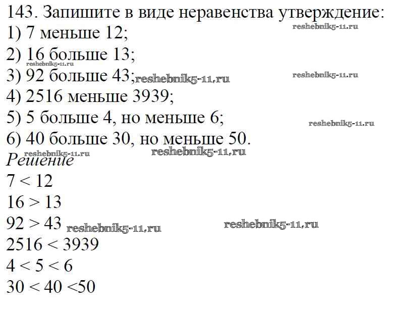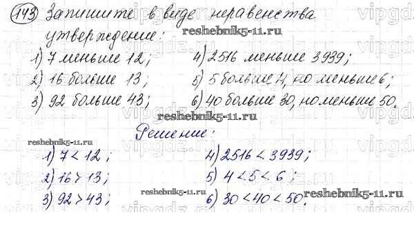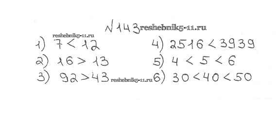 Готовая домашняя работа с ответами по Математике за 5 класс Мерзляк, Полонский, Якир Учебник Алгоритм успеха Вентана-граф 2016 ФГОС - §6. Сравнение натуральных чисел 143
