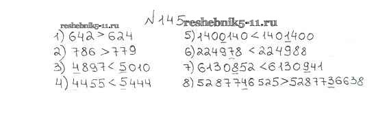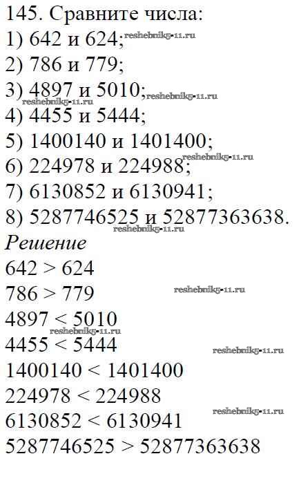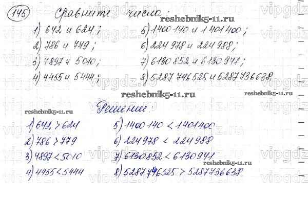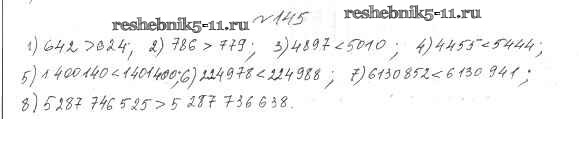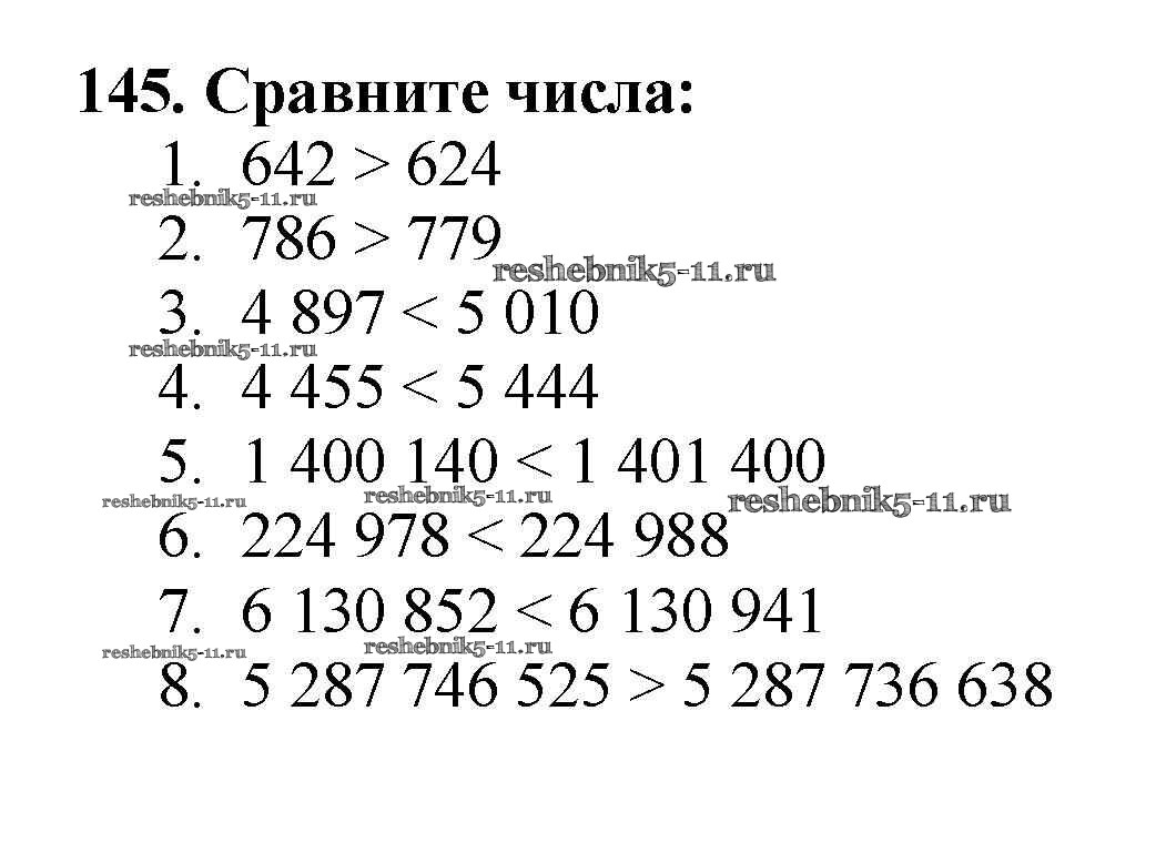 Готовая домашняя работа с ответами по Математике за 5 класс Мерзляк, Полонский, Якир Учебник Алгоритм успеха Вентана-граф 2016 ФГОС - §6. Сравнение натуральных чисел 145