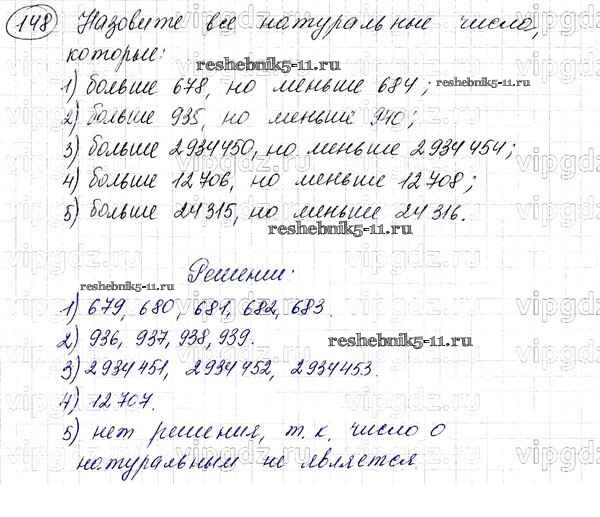 Готовая домашняя работа с ответами по Математике за 5 класс Мерзляк, Полонский, Якир Учебник Алгоритм успеха Вентана-граф 2016 ФГОС - §6. Сравнение натуральных чисел 148