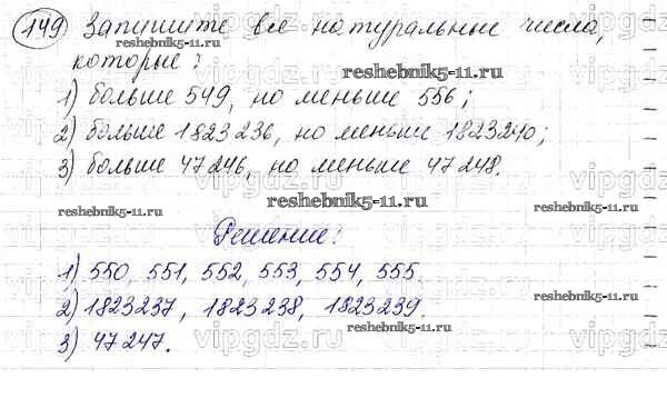 Готовая домашняя работа с ответами по Математике за 5 класс Мерзляк, Полонский, Якир Учебник Алгоритм успеха Вентана-граф 2016 ФГОС - §6. Сравнение натуральных чисел 149